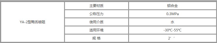 YA-2型鴨舌噴咀技術(shù)參數(shù):